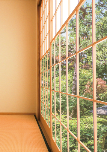 日光が障子を通してほのかに室内を照らす様子は、幻想的でとても美しく、温かみを感じる優しい明るさがあります。【灯〜akari〜】は白い窓の部分が、不透明から透明への切り替えができ、外を見渡すこともできます。扉として、空間を仕切るパーテーションとして、自然と調和した日本の良き建築文化を体感してください。